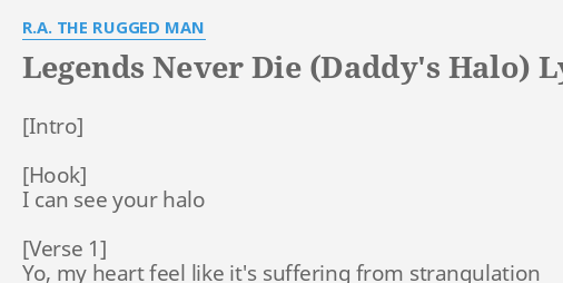 Ra the rugged man legends never die lyrics. Tears flying outta my eyes my heart racing and my hands shaking. I m staring at your corpse praying and waiting for you to awaken. The last days of your life as a cancer patient. Last fm s current most loved pop tracks.
