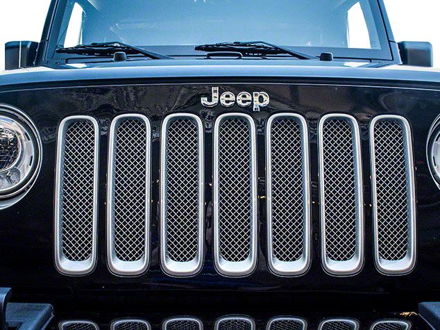Rugged ridge spartan grille with teeth mesh insert kit for 07 18 jeep wrangler jk. Rugged ridge ez install billet grill inserts in chrome for 97 06 jeep wrangler tj unlimited. Featuring a perforated metal design that will enhance the front of your jeep adding great styling with a unique flair this insert also comes with corrosion resistant hardware and a 5 year limited warranty. The rugged ridge perforated grille insert in black is designed for use in 2007 2018 jeep wrangler models.