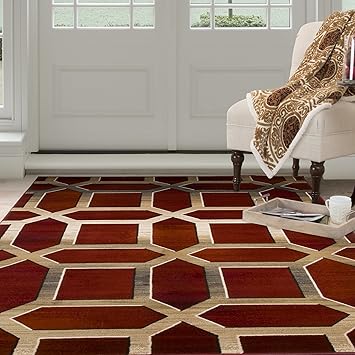 Amazon Com Lavish Home Opus Art Deco Area Rug 3 3 X 5 Burgundy Furniture Decor