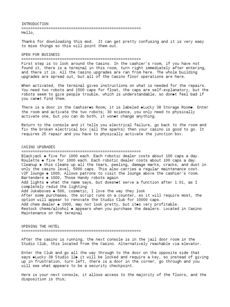 Page 139 of 266 run the lucky 38 posted in file topics. The casino and presidential suite may appear very darkly lit with screen effects set to none or bloom. How do i fix this. Anyone know if there s a guide to the run the lucky 38 mod somewhere.