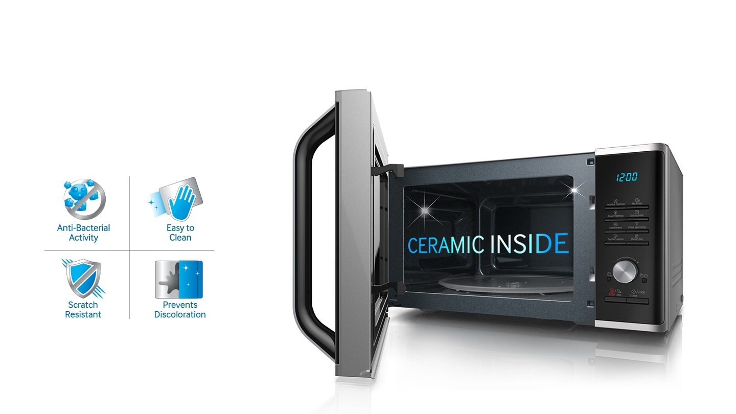 Samsung ceramic inside mikro. 2017 06 07 rated 5 out of 5 by bheks from magnifique this is a magnificent microwave with the option to operate it on silent mode if you don t want that beep sound. For additional questions regarding samsung premium care please call 1 866 371 9501. Samsung solo microwave oven 23l ms23j5133ak sp buy samsung 23l ceramic inside solo microwave oven with features like power defrost keep warm function at best price in singapore. Olcsó grilles mikrók rendkívüli mikrohullámú sütő akciók az árukereső árkereső oldalon.