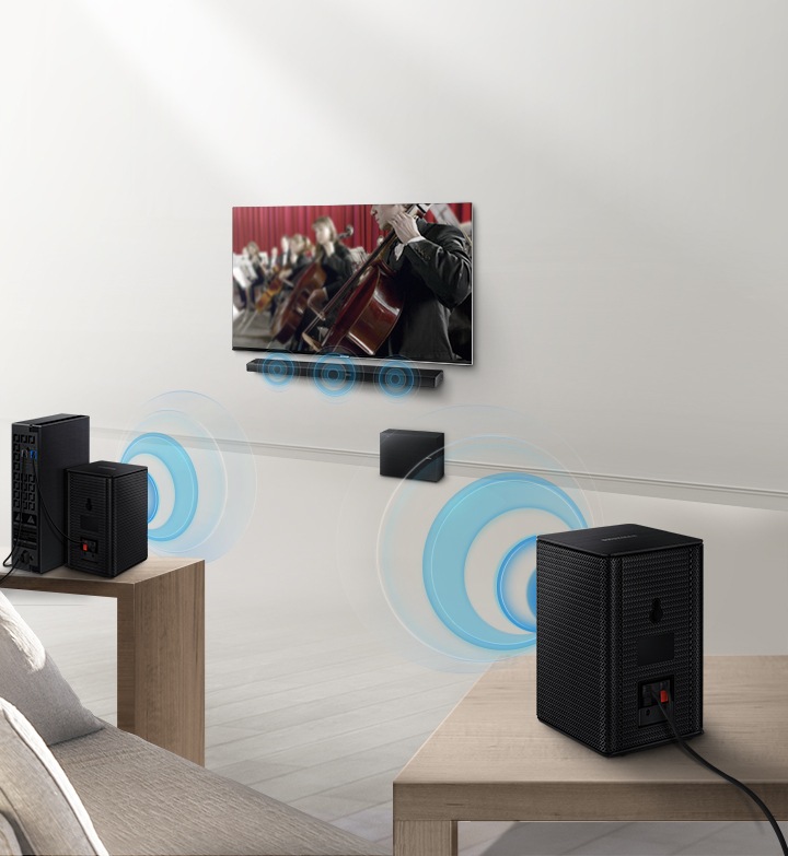 Experience more powerful surround sound expand your existing sound system with samsung swa 8500s wireless rear speakers. Bring a new dimension to your home audio experience and feel the power and depth of your favorite movies and tv shows. Enjoy the immersive clutter free experience and get great sound all around by easily connecting the additional speakers wirelessly via wi fi. Premium care is free for the first month.